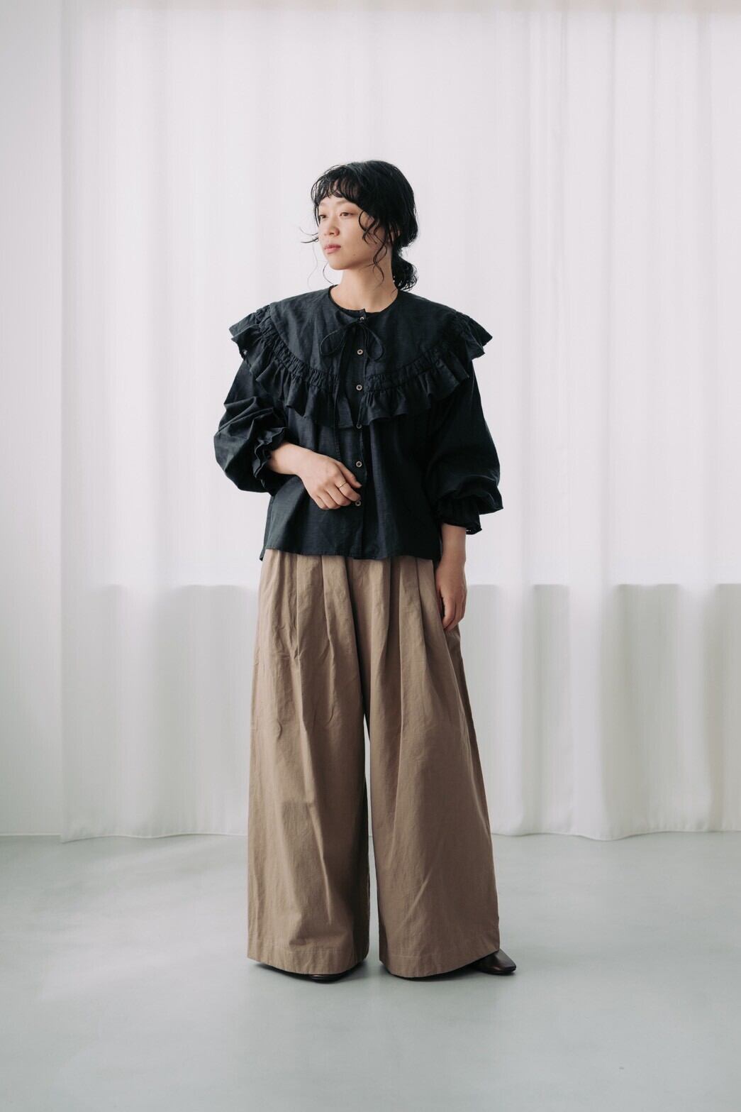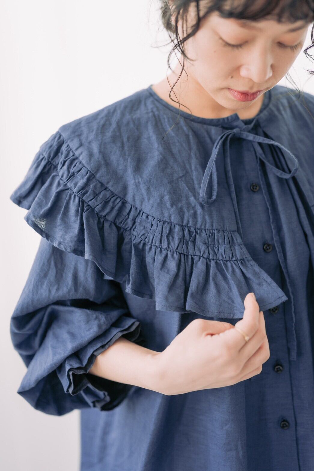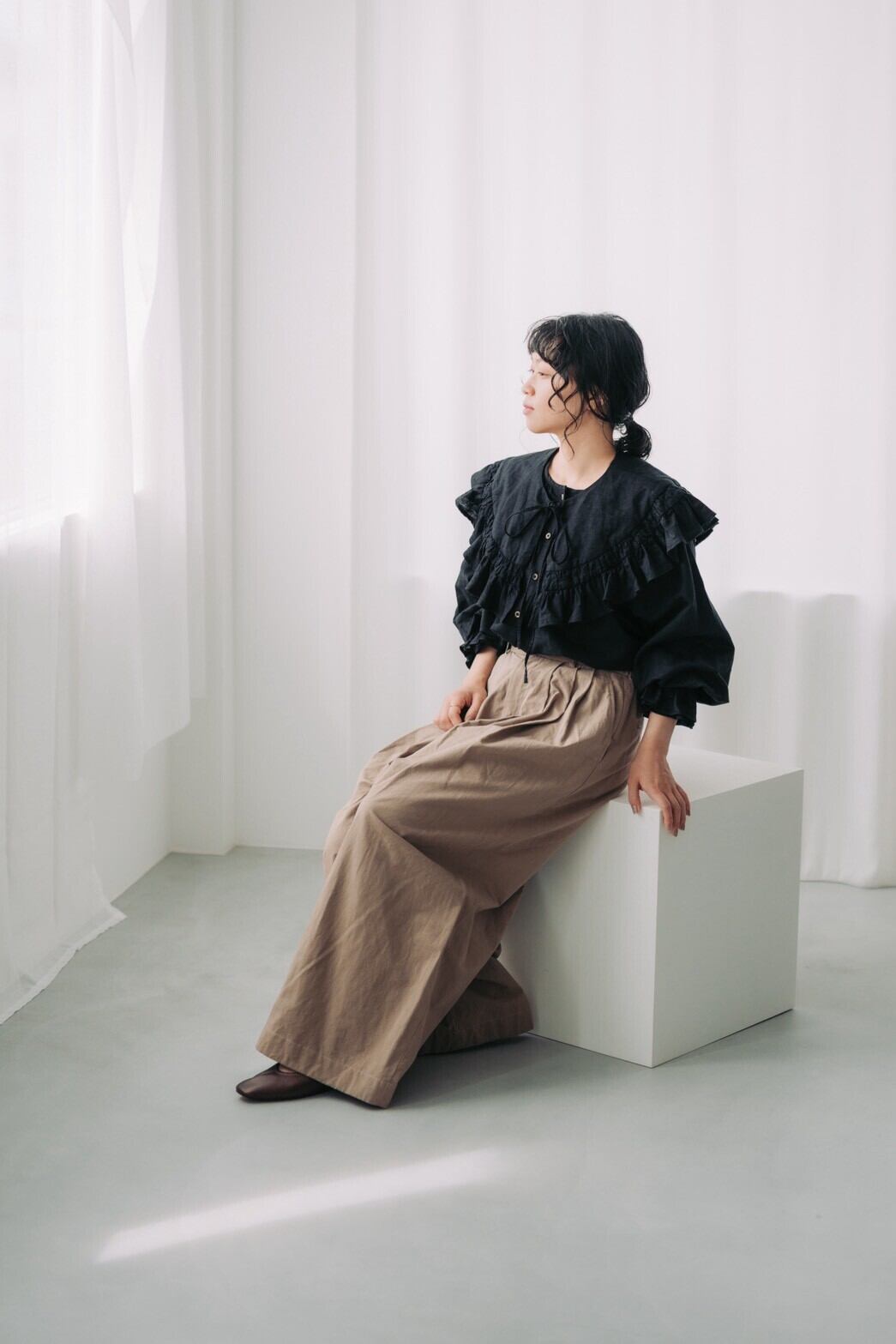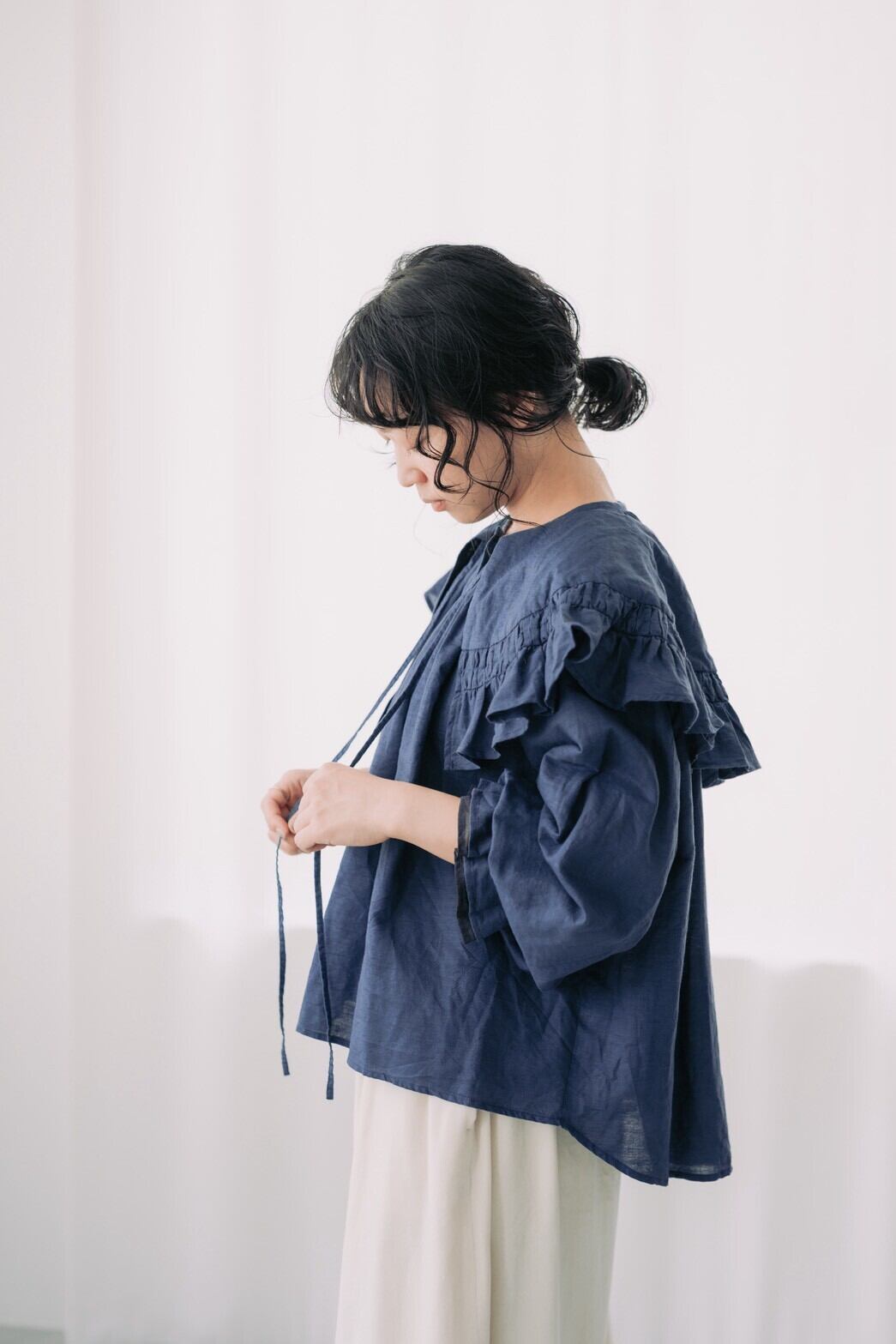素材は着るほどにその人に馴染む、リネンコットンの平織り生地。薄すぎず、厚すぎず、肌触り滑らかな通年素材を使用しています。