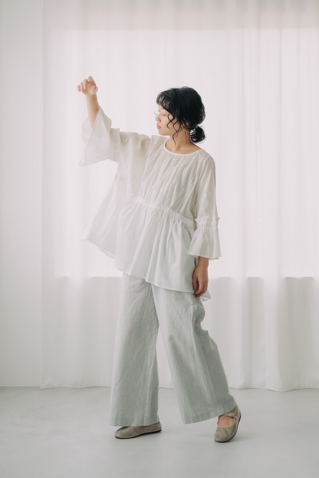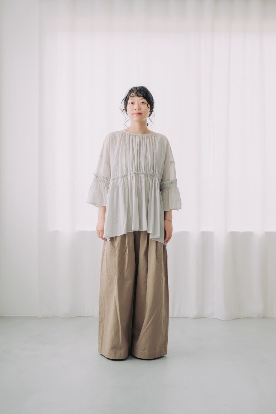 エアリーな素材感とたっぷり入ったギャザーが軽やかな印象のプルオーバー。